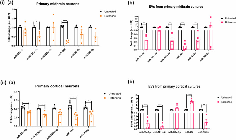 Rotenone induced acute miRNA alterations in extracellular vesicles produce mitochondrial dysfunction and cell death