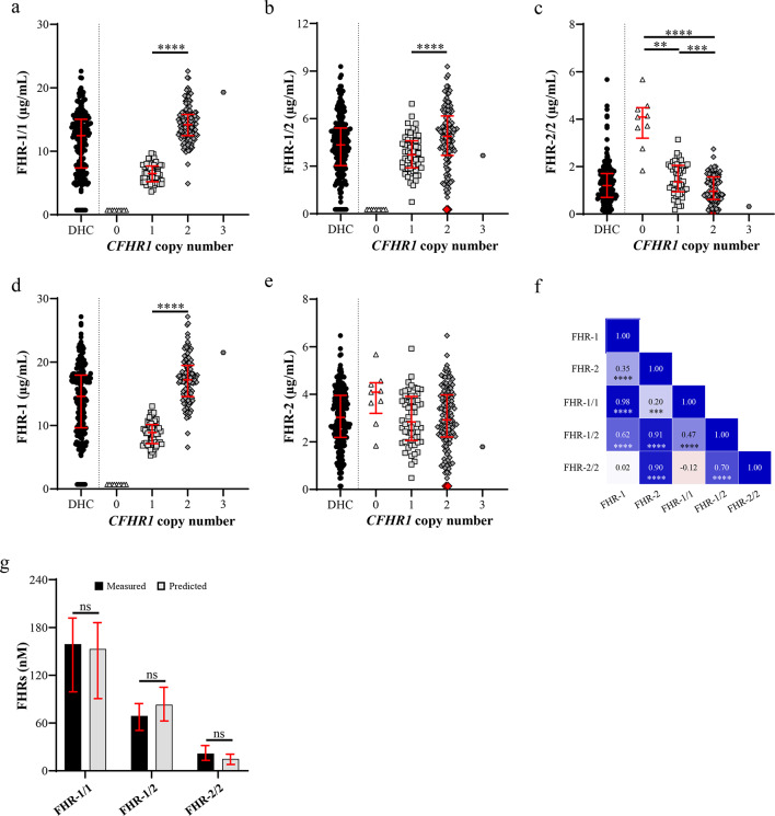 Factor H-related (FHR) protein 1 and 2 form dimers resulting in FHR-1 and -2 homodimers, and FHR-1/2 heterodimers. Dimerization is hypothesized to further increase their antagonistic function with complement regulator factor H (FH). So far, only FHR-1 homodimers and FHR-1/2 heterodimers could be quantified in a direct way. With the reported genetic associations between CFHR2 and complement-related diseases such as age related macular degeneration and C3-glomerulopathy, direct assessment of FHR-2/2 levels determining the dimer distribution of FHR-1 and -2 is needed to further elucidate their role within complement regulation. Therefore, novel in-house generated FHR-2 antibodies were used to develop a specific ELISA to enable direct quantification of FHR-2 homodimers. Allowing for the first time the accurate measurement of all FHR-1 and -2 containing dimers in a large cohort of healthy donors. By using native FHR-1 and -2 or deficient plasma, we determined the stability, kinetics and distribution of FHR-1 and -2 dimers. Additionally, we show how genetic variants influence dimer levels. Our results confirm a rapid, dynamic, dimer formation in plasma and show FHR-1/2 dimerization rearches a distribution equilibrium that is limited by the relative low levels of FHR-2 in relation to its dimerization partner FHR-1.