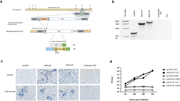 The availability of influenza vaccines that can induce broadly protective immune responses is highly desirable and could also mitigate the impact of future influenza pandemics. Ideally, these vaccines also induce virus-specific CD8 + T cells, which have been identified as an independent correlate of protection. In the present study, we explored the use of an artificial immunogen that comprises of twenty highly conserved influenza virus CD8 + T cell epitopes with an HLA coverage of 99.5% of the world population. The highly attenuated viral vector Modified Vaccinia virus Ankara (MVA) was used to deliver the artificial poly-epitope sequence (rMVA-PE) and by using T cell lines raised against individual epitopes, we confirmed that the epitopes are liberated from the artificial immunogen. For efficient antigen processing and presentation, the epitopes were separated by spacer sequences. Stimulation of peripheral blood mononuclear cells of HLA-typed blood donors with rMVA-PE resulted in the activation of influenza virus-specific T cell responses. Furthermore, immunization of humanized HLA-A2.1-/HLA-DR1-transgenic H-2 class I-/class II-knockout mice (HLA-A*02:01) with rMVA-PE induced influenza virus-specific CD8 + T cell responses. Thus, rMVA-PE proved to be immunogenic both in vitro and in vivo and constitutes a promising vaccine candidate for the induction of cross-reactive CD8 + T cell responses that could afford protection against antigenically distinct influenza A viruses (IAV) of various subtypes and species, and is currently considered for further clinical testing.