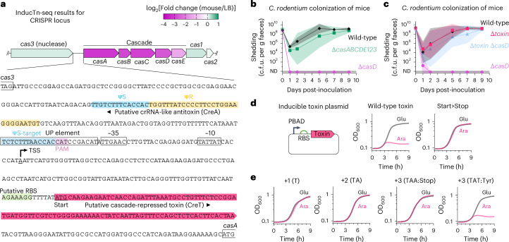 Transposon insertion sequencing (Tn-seq) is a powerful method for genome-scale forward genetics in bacteria. However, inefficient transposon delivery or stochastic loss of mutants due to population bottlenecks can limit its effectiveness. Here we have developed 'InducTn-seq', where an arabinose-inducible Tn5 transposase enables temporal control of mini-Tn5 transposition. InducTn-seq generated up to 1.2 million transposon mutants from a single colony of enterotoxigenic Escherichia coli, Salmonella typhimurium, Shigella flexneri and Citrobacter rodentium. This mutant diversity enabled more sensitive detection of subtle fitness defects and measurement of quantitative fitness effects for essential and non-essential genes. Applying InducTn-seq to C. rodentium in a mouse model of infectious colitis bypassed a highly restrictive host bottleneck, generating a diverse population of >5 × 105 unique transposon mutants compared to 10-102 recovered by traditional Tn-seq. This in vivo screen revealed that the C. rodentium type I-E CRISPR system is required to suppress a toxin otherwise activated during gut colonization. Our findings highlight the potential of InducTn-seq for genome-scale forward genetic screens in bacteria.