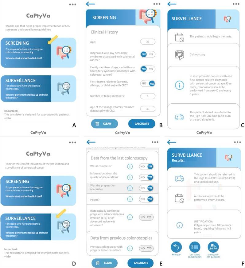 Results: A total of 12,481 consultations were recorded; 3,054 (24.4%) screening and 9,427 (75.6%) post-polypectomy surveillance consultations. The app was increasingly and repeatedly used by professionals during the study period (72% retention rate). Among screening consultations, 2,082 (68.2%) patients were classified as average risk, suggesting the use of fecal occult blood test (FOBT) instead of colonoscopy. Among surveillance consultations, the app advised deferring follow-up colonoscopies and using FOBT instead in 4,748 (50%) patients based on negative index colonoscopy or the presence of low-risk polyps. Standard surveillance with colonoscopy at 3 years was recommended for 3,224 (34.1%) patients and intensive surveillance, requiring a colonoscopy at 1 year, was indicated for 749 (7.9%) patients.