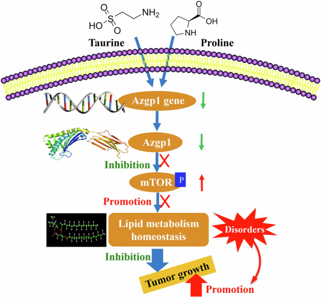 Taurine and proline promote lung tumour growth by co-regulating Azgp1/mTOR signalling pathway