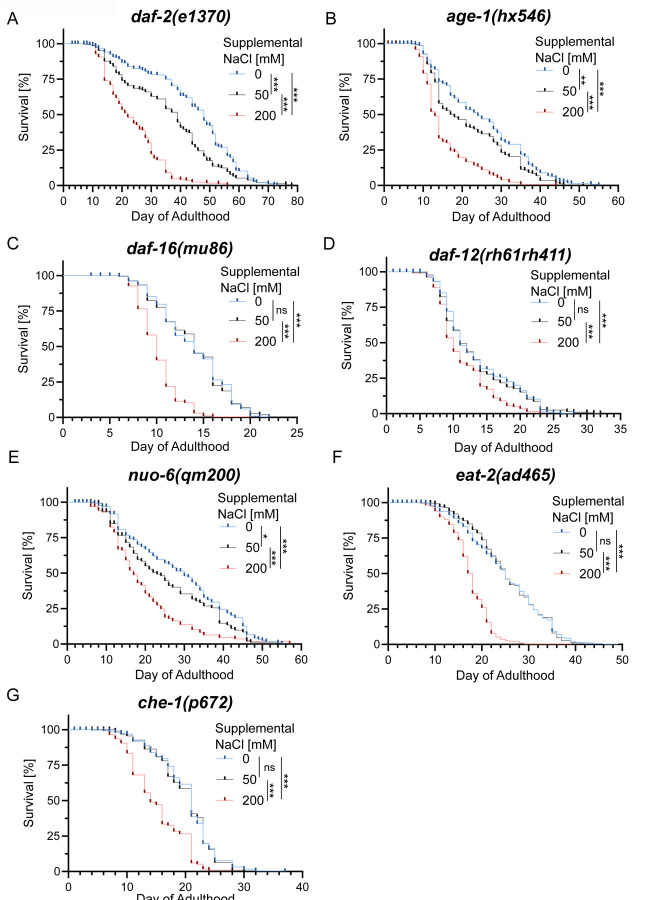 Keywords: C. elegans; aging; daf-2; development; lifespan; salt; sodium chloride (NaCl).
