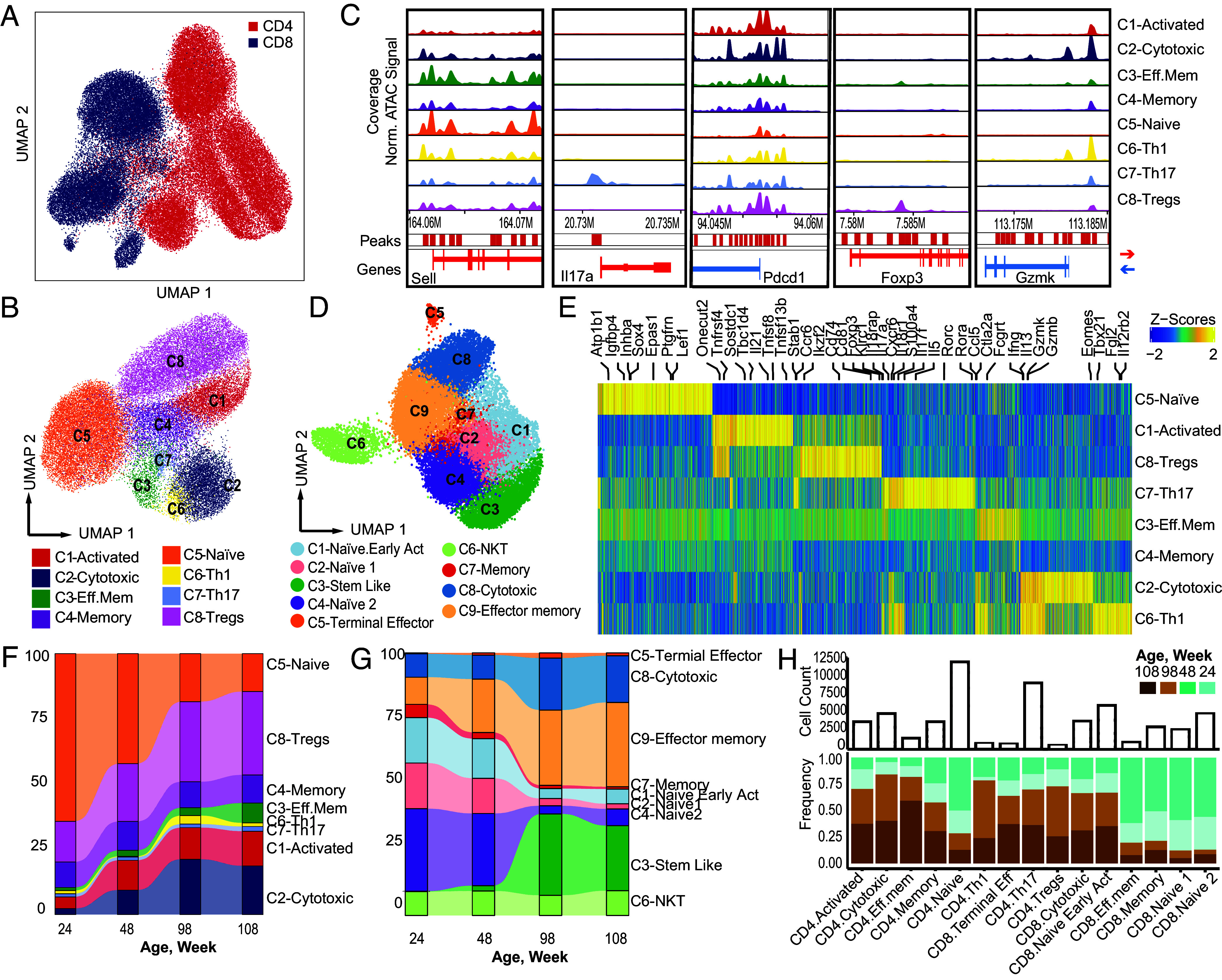 Single cell-resolved cellular, transcriptional, and epigenetic changes in mouse T cell populations linked to age-associated immune decline