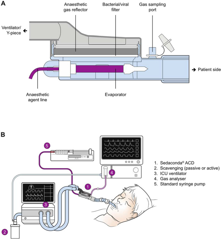 Methods: The Inhaled Sedation versus Propofol in Respiratory Failure in the ICU (INSPiRE-ICU2) is a phase 3, multicenter, randomized, controlled, assessor-blinded non-inferiority trial that will evaluate efficacy and safety of inhaled isoflurane delivered via the Sedaconda ACD-S, compared to intravenous propofol, for sedation of mechanically ventilated adult ICU patients. At 16 US hospitals, 235 enrolled patients requiring continuous sedation during invasive mechanical ventilation will be randomized in 1.5:1 ratio to inhaled isoflurane or intravenous propofol for sedation. Treatment duration is expected to be at least 12 h and may last up to 48 (± 6) h or until no longer needing continuous sedation, whichever occurs first. The primary endpoint is the percentage of time sedation depth is maintained within the targeted range (Richmond Agitation Sedation Scale - 1 to - 4), in the absence of rescue sedation, during the treatment period. Secondary superiority outcomes include opioid exposure, wake-up time, cognitive recovery after end-of-treatment, and preservation of spontaneous breathing effort.