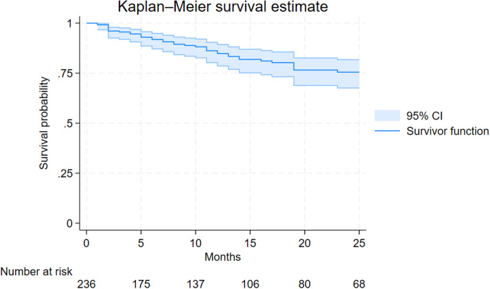 Results: A total of 236 PWH started TAF/FTC/BIC, with a median follow-up time of 13 months (interquartile range [IQR] 4-27 months). Most PWH were cisgender men (178/236, 75.4%) with a median age at diagnosis of 37 years (IQR 29-48) and a median cluster of differentiation 4 cell counts of 302 cells/mm³ (IQR 117-467). One protocol-defined virological failure was observed, without the development of drug resistance, resulting in an incidence of 3.1 per 1000 person-years of follow-up (95% confidence interval [CI] 0.8-17.3). Six (2.5%) PWH discontinued TAF/FTC/BIC because of toxicity. The estimated durabilities of TAF/FTC/BIC at 12 and 24 months were 84.8% (95% CI 78.6-89.3%) and 75.5% (95% CI 67.6-82.6%), respectively.