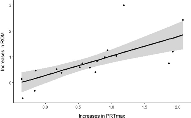 Results: Data from 65 studies representing 1542 adults (71% male; mean ± standard deviation age = 26.1 ± 11 years) were included. We found a small decrease in overall stiffness following both acute (Hedges' g = 0.42, 95% confidence interval [CI] 0.21, 0.63, p < 0.001) and chronic SS (Hedges' g = 0.37, 95% confidence interval 0.18, 0.56, p < 0.001), and a moderate increase in maximum tolerable passive resistive torque following chronic SS (Hedges' g = 0.74, 95% CI 0.38, 1.10, p < 0.001). Neither acute nor chronic SS had a significant effect on fascicle length. For acute SS, greater reductions in overall stiffness were found with moderate (p < 0.002) and high SS intensities (p = 0.02) compared with low-intensity SS, and in individuals with normal flexibility compared with those with poor flexibility at baseline (p < 0.001). Conversely, the effects of chronic SS on overall stiffness and maximum tolerable passive resistive torque were not moderated by stretching intensity, intervention length, baseline flexibility or sex (p > 0.05). Last, improved ROM following chronic SS was significantly associated with both decreased overall stiffness (g = 0.59, 95% CI 0.08, 1.10, p = 0.03) and increased maximum tolerable passive resistive torque (g = 0.74, 95% CI 0.41, 1.09, p < 0.001).