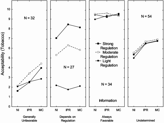 Results: Through cluster analysis, three qualitatively different positions were found in relation to control policies for each substance: Generally unfavorable, irrespective of policy (22% and 17%), Depends on regulation (18% and 22%), and Always favorable, irrespective of policy (23% and 25%). A substantial minority of participants (37% and 36%) expressed no opinion at all.