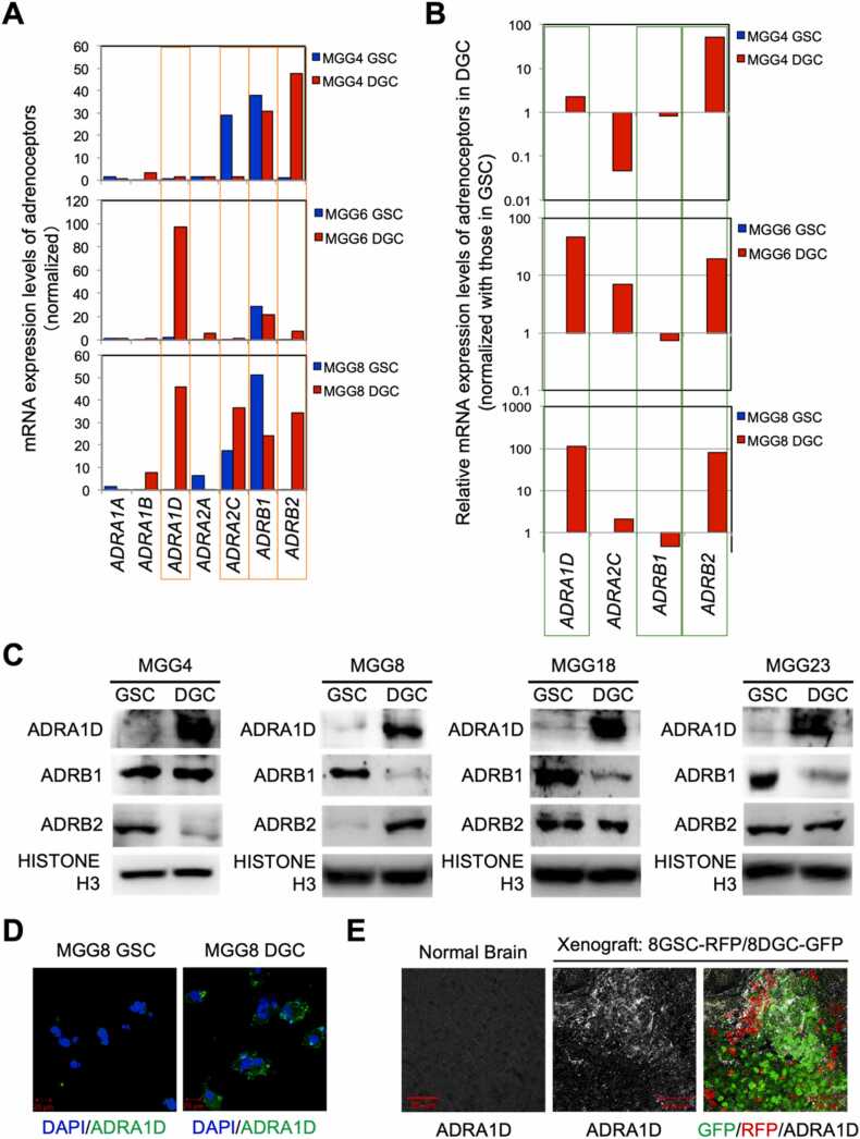 Changes in adrenoceptor expression level contribute to the cellular plasticity of glioblastoma cells