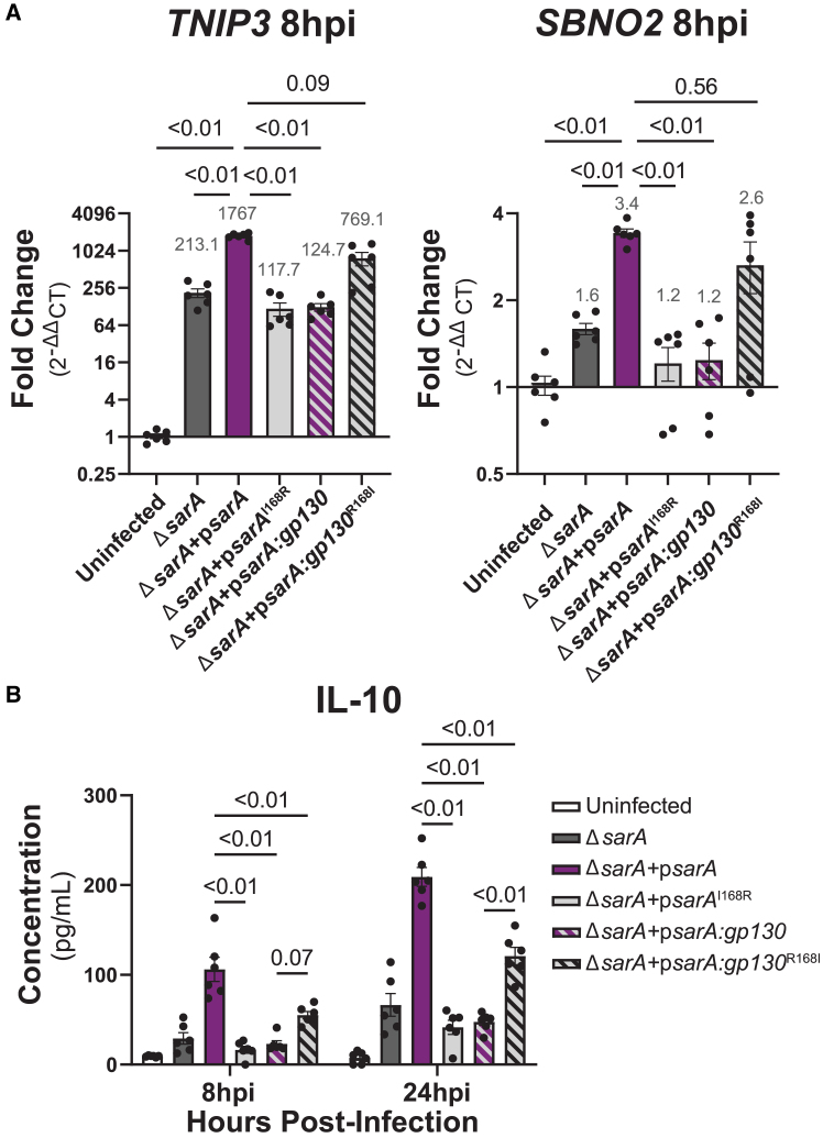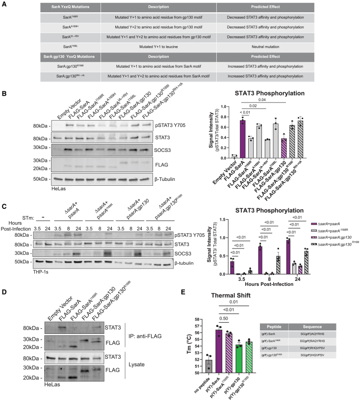 A single amino acid in the Salmonella effector SarA/SteE triggers supraphysiological activation of STAT3 for anti-inflammatory gene expression