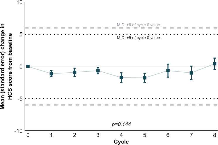 Methodology: Participants completed the EQ-5D-3 L, EQ-VAS, and FACT-Hep at baseline and on the first day of each nivolumab cycle. Linear mixed-effect models were used to calculate changes in outcomes in participants with the baseline and ≥ 1 follow-up measurement. Changes were assessed for clinical meaningfulness versus published minimally important differences.