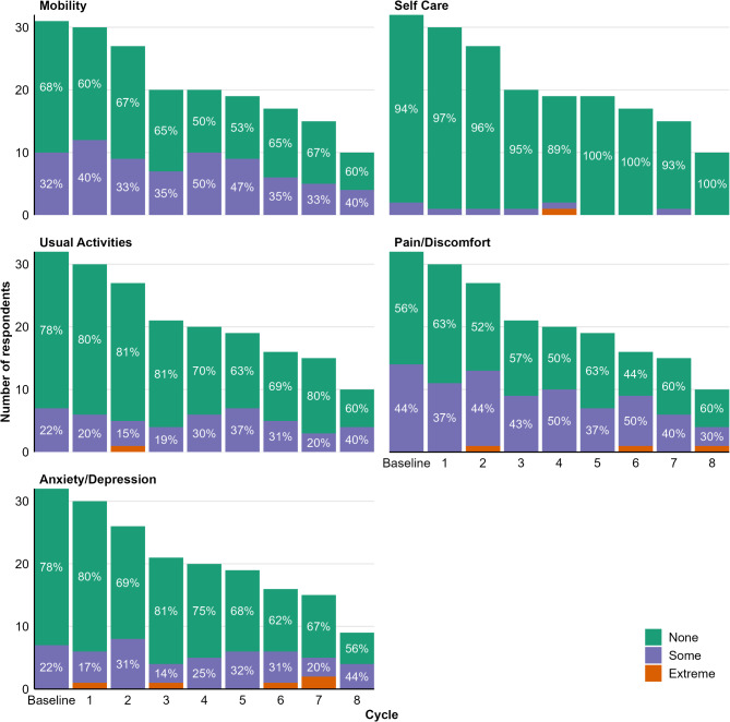 Results: Thirty-two patients from NASIR-HCC were included. Completion rates exceeded 70% at 62% of time points. Across EQ-5D-3 L domains, minimal changes were reported. Most patients had no problems at almost all time points. Mean index values were 0.864 at baseline and 0.763 in cycle 8, but this difference was not clinically meaningful. The small EQ-VAS increase, from 74.8 at baseline to 75.9 in cycle 8, was also not clinically meaningful. The various FACT scales remained stable, although transient but not clinically meaningful declines occurred for some scales. The median time to deterioration was 5.5 months for the FACT-Hep score.