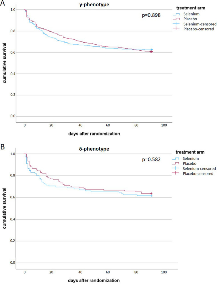 Results: No robust effect of selenium on mortality and other outcome parameters could be determined in any sepsis phenotype. Phenotype frequencies were markedly different in our study cohort compared to previous reports (α: 2.2%, β: 6.3%, γ: 68.0%, δ: 23.4%). Differences in mortality between the respective phenotypes were not significant overall; however, 28-day mortality showed a lower mortality for the α- (20.8%) and β-phenotype (20.3%), followed by the γ- (27.1%), and δ-phenotype (28.5%).