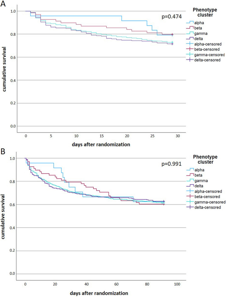 Methods: In this secondary data analysis of the SISPCT trial all 1089 patients of the original study were included. Patients were assigned to one of the four phenotypes by comparing patient variables with the Sepsis Endotyping in Emergency Care (SENECA) validation cohort. Survival analyses were performed using Kaplan-Meier and log-rank tests.