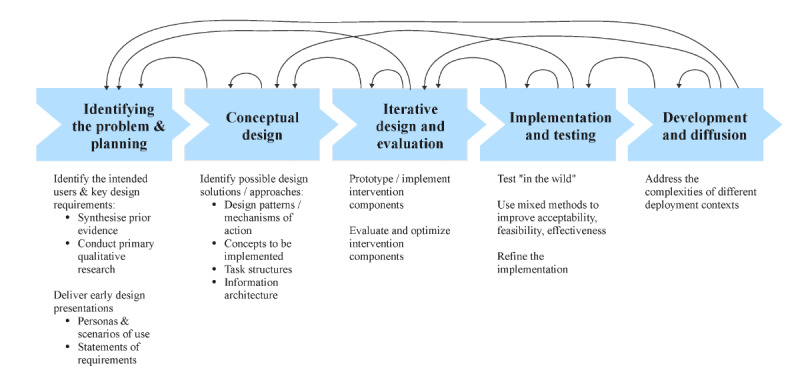 Background: It is challenging to design usable and effective digital health interventions (DHIs). The person-based approach (PBA) has been proposed to incorporate users' perspectives for the design of DHIs. However, it does not explicitly describe the iterative stages of design and evaluation that are essential in moving from early planning to deployment. For this, we draw on methods from human computer interaction (HCI) that have been developed for various situations.
