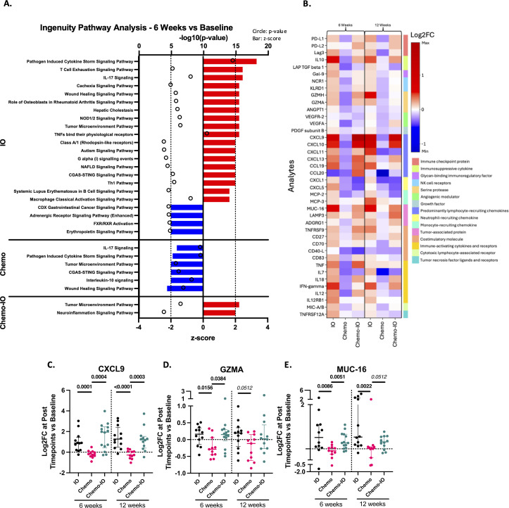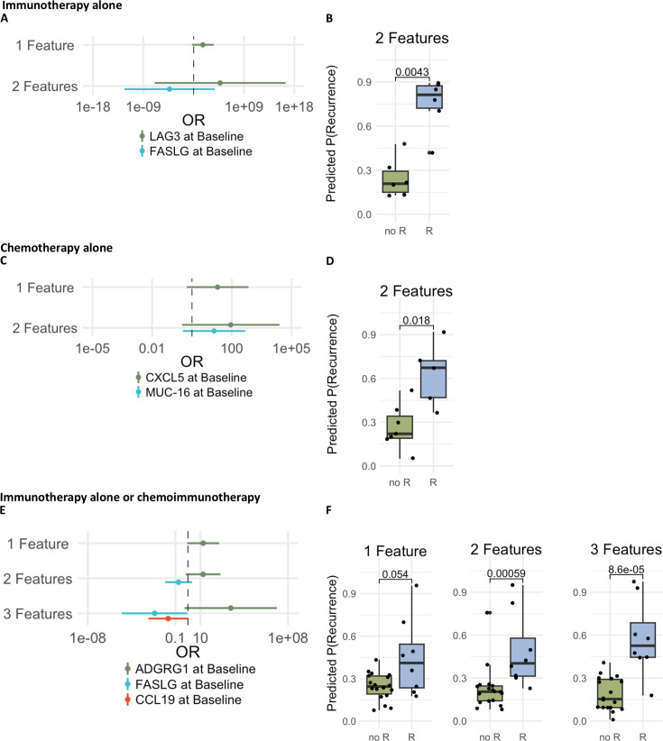 Results: Levels of specific analytes at baseline and changes in levels at early time points on treatment preceding recurrence were associated with eventual development of disease recurrence and/or the duration of iDFS. These associations varied based on the therapy patients received. Immunotherapy led to enrichment in pro-inflammatory analytes following treatment, whereas chemotherapy resulted in overall decreases. Changes seen in patients receiving chemoimmunotherapy more closely resembled those observed in patients receiving immunotherapy alone as opposed to chemotherapy alone. Furthermore, logistic regression and Cox proportional hazard models, developed using machine learning methods, demonstrated that combinations of serum analytes were more predictive of disease recurrence and iDFS duration than analyses of single serum analytes. Notably, the multivariable models that predicted patient outcomes were highly specific to the class of treatment patients received.