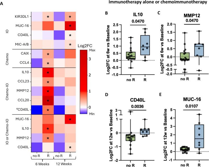 Methods: Patients (n=38) were assayed for 97 serum analytes before and after 6 and 12 weeks of therapy. Serum analytes were assessed for changes with therapy, and as predictors of disease recurrence and the duration of invasive disease-free survival (iDFS) in both single analyte analyses and machine learning models.
