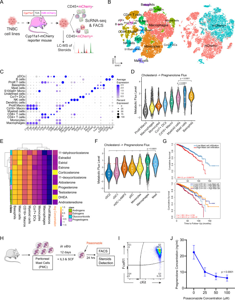 Breast cancer, particularly triple-negative breast cancer (TNBC), evades the body's immune defences, in part by cultivating an immunosuppressive tumour microenvironment. Here, we show that suppressing local steroidogenesis can augment anti-tumour immunity against TNBC. Through targeted metabolomics of steroids coupled with immunohistochemistry, we profiled the existence of immunosuppressive steroids in TNBC patient tumours and discerned the steroidogenic activity in immune-infiltrating regions. In mouse, genetic inhibition of immune cell steroidogenesis restricted TNBC tumour progression with a significant reduction in immunosuppressive components such as tumour associated macrophages. Steroidogenesis inhibition appears to bolster anti-tumour immune responses in dendritic and T cells by impeding glucocorticoid signalling. Undertaking metabolic modelling of the single-cell transcriptomics and targeted tumour-steroidomics, we pinpointed the predominant steroidogenic cells. Inhibiting steroidogenesis pharmacologically using a identified drug, posaconazole, curtailed tumour expansion in a humanised TNBC mouse model. This investigation paves the way for targeting steroidogenesis and its signalling pathways in breast cancer affected by immune-steroid maladaptation.