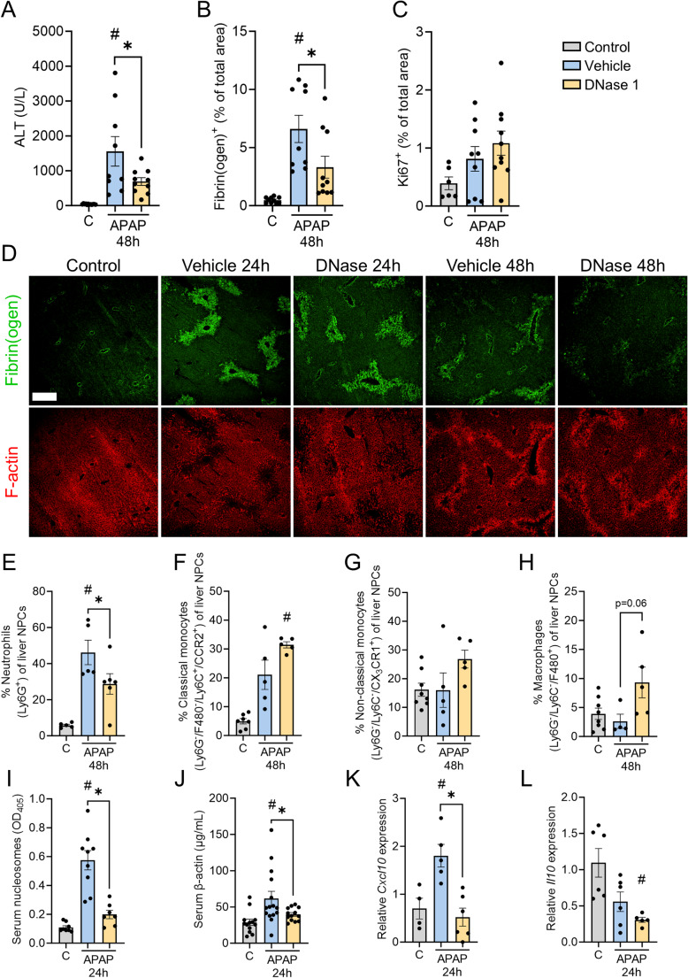 Degradation rather than disassembly of necrotic debris is essential to enhance recovery after acute liver injury