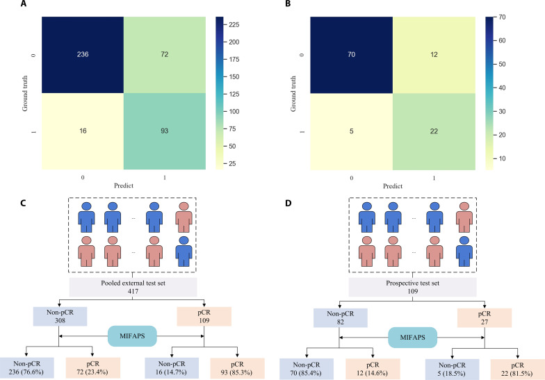 Accurately predicting pathological complete response (pCR) before neoadjuvant chemotherapy (NAC) is crucial for patients with breast cancer. In this study, we developed a multimodal integrated fully automated pipeline system (MIFAPS) in forecasting pCR to NAC, using a multicenter and prospective dataset of 1004 patients with locally advanced breast cancer, incorporating pretreatment magnetic resonance imaging, whole slide image, and clinical risk factors. The results demonstrated that MIFAPS offered a favorable predictive performance in both the pooled external test set [area under the curve (AUC) = 0.882] and the prospective test set (AUC = 0.909). In addition, MIFAPS significantly outperformed single-modality models (P < 0.05). Furthermore, the high deep learning scores were associated with immune-related pathways and the promotion of antitumor cells in the microenvironment during biological basis exploration. Overall, our study demonstrates a promising approach for improving the prediction of pCR to NAC in patients with breast cancer through the integration of multimodal data.