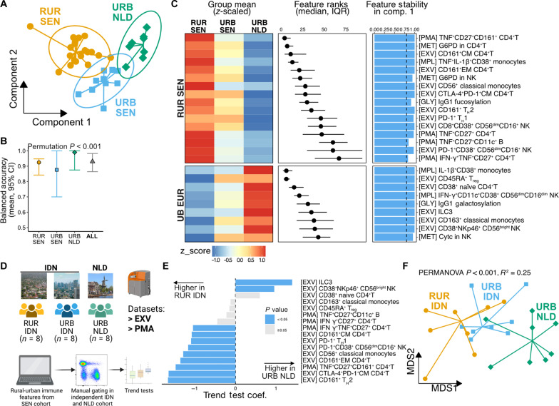 Systems analysis unravels a common rural-urban gradient in immunological profile, function, and metabolic dependencies