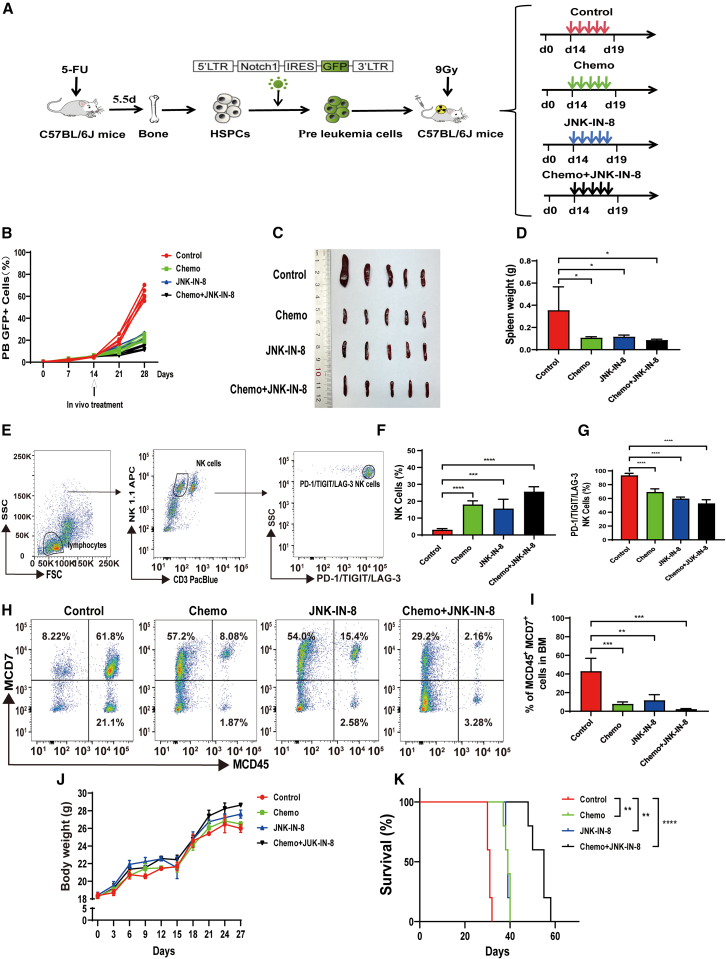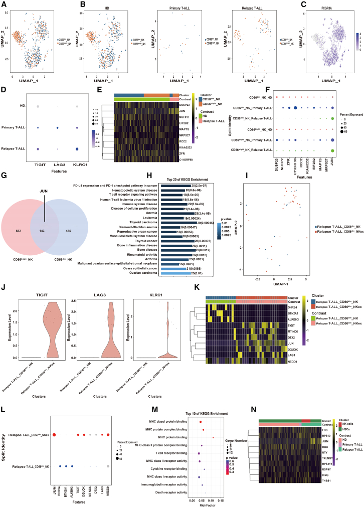 Keywords: JUN; NK cells; T cell acute lymphoblastic leukemia; immune exhaustion; single-cell RNA sequencing.