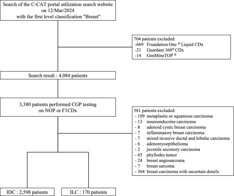 Declarations. Conflict of interest: YT received a research grant from Eli Lilly and speaker honorarium from Chugai, MSD, Eli Lilly Japan K.K., Pfizer, Dai-ichi Sankyo, and AstraZeneca. MI received a research grant from AstraZeneca and Pfizer and speaker honorarium from Chugai., MSD, Eli Lilly, Pfizer, Kyowa Kirin, Taiho, and Exact Sciences. TK received a speaker honorarium from Chugai, Daiichi Sankyo, Pfizer, Novartis Pharma, Eli Lilly, Eisai, Kyowa Kirin, and Celltrion. YA received a research grant from Chugai, Kyowa Kirin, Nippon Kayaku, Mochida Pharma, Taiho, Daiichi Sankyo and BeiGene and speaker honorarium from Chugai, MSD K.K, Eli Lilly, Kyowa Kirin, Nippon Kayaku, Novartis Pharma, Daiichi Sankyo, Taiho, Ono, Guardant Health, and AstraZeneca. KM, SM, and NT have no conflict of interest. Ethical approval: All procedures performed in studies involving human participants were in accordance with the ethical standards of the institutional and/or national research committee and with the 1964 Helsinki declaration and its later amendments or comparable ethical standards. Informed consent: Informed consent was obtained from all individuals who agreed to be registered in the C-CAT database.