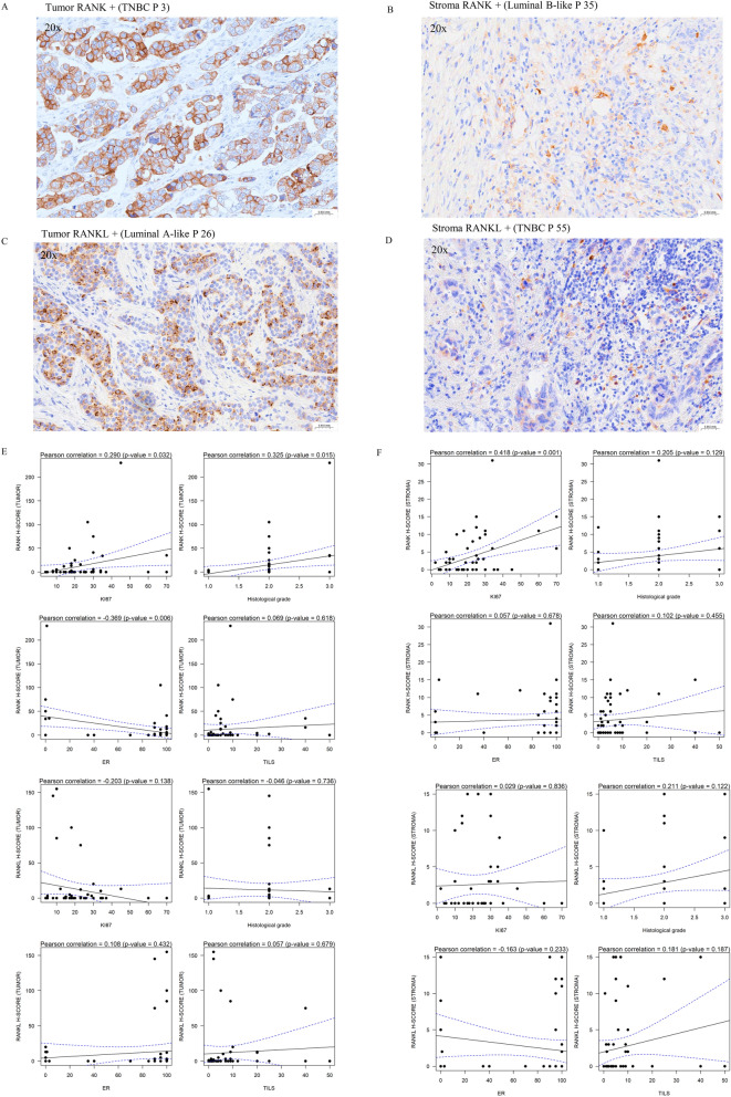 Results: Denosumab demonstrated its ability to reduce serum free RANKL levels (experimental p < 0.001, control p = 0.270). However, a reduction in tumor cell proliferation or cell survival was not observed. A denosumab-driven increase in tumor infiltrating lymphocytes (TILs) was observed (experimental p = 0.001, control p = 0.060), particularly in the luminal B-like population (experimental p = 0.012, control p = 0.070) and a similar trend in the TNBC group (experimental p = 0.079, control p = 0.237). Denosumab led to increased TILs in both pre-menopausal (experimental p = 0.048, control p = 0.639) and post-menopausal (experimental p = 0.041, control p = 0.062) women with luminal tumors. RANK protein expression in tumor and stroma was associated with markers of tumor aggressiveness but an increase in TILs was observed in the experimental arm, irrespectively of RANK and RANKL expression in tumor or stromal cells.