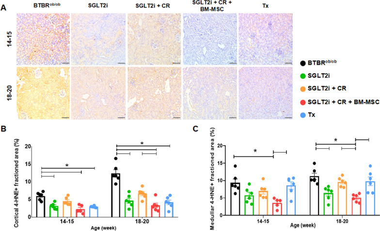 Methods: In this study, we explored the brown adipose tissue (BAT) and white adipose tissue (WAT) transplantation, and the use of bone marrow mesenchymal stem cell therapy (BM-MSC) combined with sodium-glucose co-transporter-2 (SGLT2) inhibitor treatment and calorie restriction in the BTBRob/ob model, recognized as a robust representation of DKD featuring hyperglycemia, obesity, time-dependent albuminuria, and histological changes.