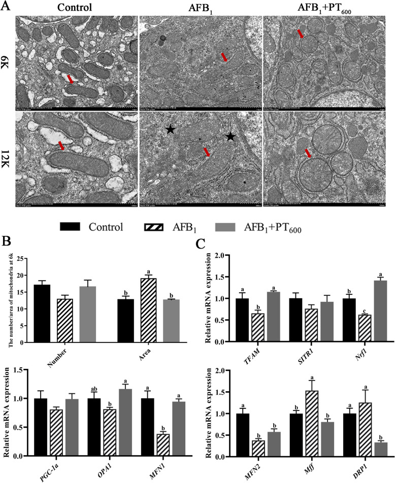 Conclusion: The PT ameliorates oxidative stress and hepatotoxicity by activating the Nrf2-mediated phase II detoxification enzymes pathway and maintains mitochondrial homeostasis by activating the Nrf1 signaling pathway in broilers exposed to AFB1.