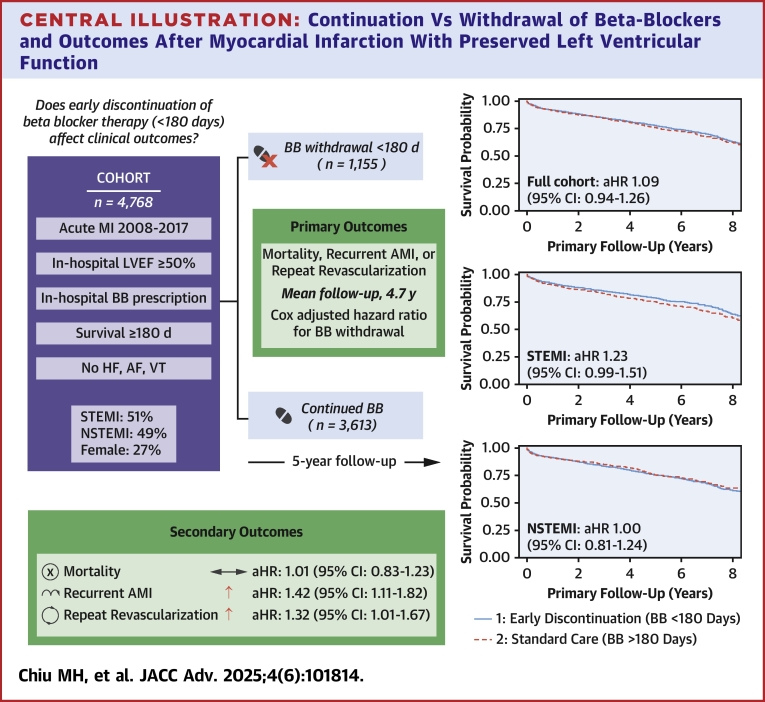 Continuation vs Withdrawal of Beta-Blockers and Outcomes After Myocardial Infarction With Preserved Left Ventricular Function