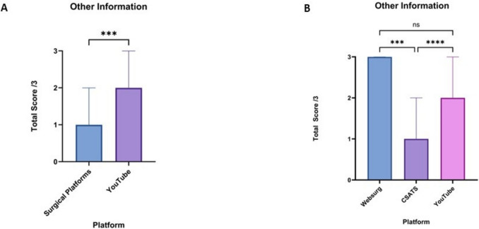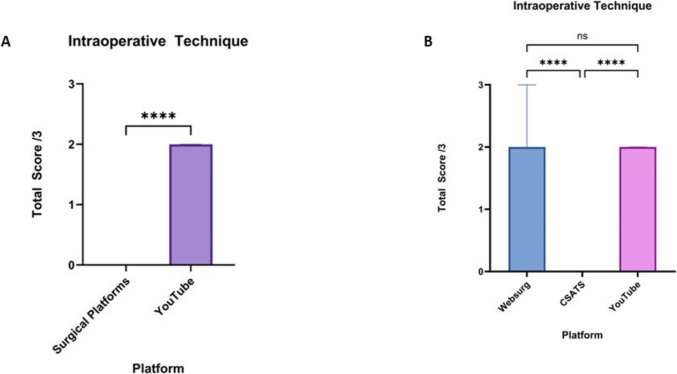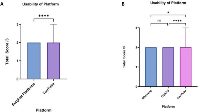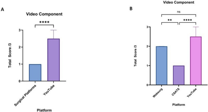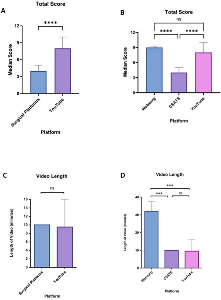 Results: A total of 113 videos were scored using the checklist: 63 surgical education platform (10 WebSurg and 53 C-SATS) and 50 YouTube videos. The total median checklist score achieved by WebSurg (9 [IQR 8-9] and YouTube videos (8 [IQR 7-10]) was significantly higher than CSAT-S videos (4 [IQR 4-5]; p < 0.001). The usability of platform scores for YouTube was significantly higher than WebSurg and C-SATS videos (p < 0.001). Scores for video components, intraoperative techniques and other information were higher across WebSurg and YouTube videos when compared to C-SATS (p < 0.001); however, there was no significant difference between WebSurg and YouTube for each domain.