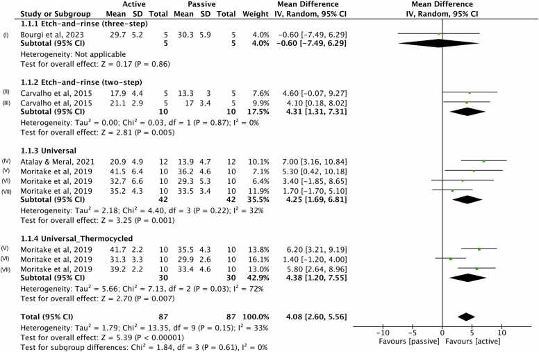 Impact of active vs. passive application of dental adhesives on bond strength to dentin and enamel: A systematic review and meta-analysis of in vitro studies