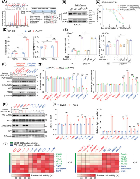 Methods: In vivo metabolic CRISPR screening in a KrasG12D/Tp53-/- ICC mouse model was used to identify primary regulators of ferroptosis during CIT (gemcitabine, cisplatin, and anti-mouse programmed cell death 1 ligand 1). Phosphoenolpyruvate carboxykinase 1 (PCK1) was assessed for its role in ferroptosis and treatment resistance in preclinical models under AKT activation levels. Molecular and biochemical techniques were used to explore PCK1-related resistance mechanisms in AKT-hyperactivated ICC.