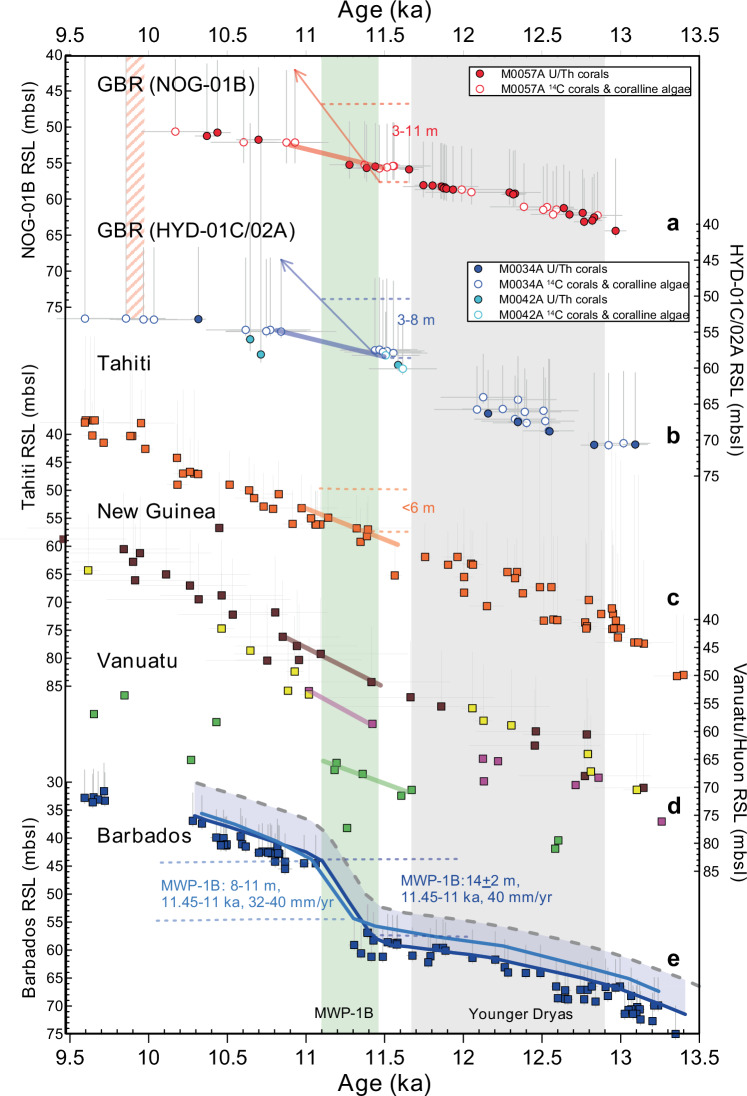 Constraints on sea-level rise during meltwater pulse 1B from the Great Barrier Reef