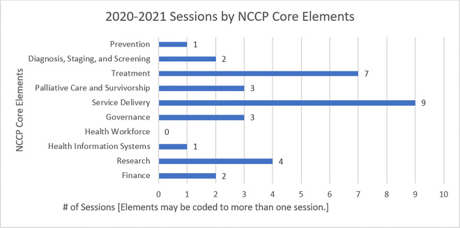 Conclusion: The content analysis of the 2020-2021 Africa Cancer ECHO series served as a useful evaluative tool to map the topical issues discussed and identify topical areas that need more emphasis. A more flexible, context-aware NCCP framework may be needed to reflect Africa-specific priorities and realities. Enhanced focus on prevention, palliative care, and surveillance is warranted.