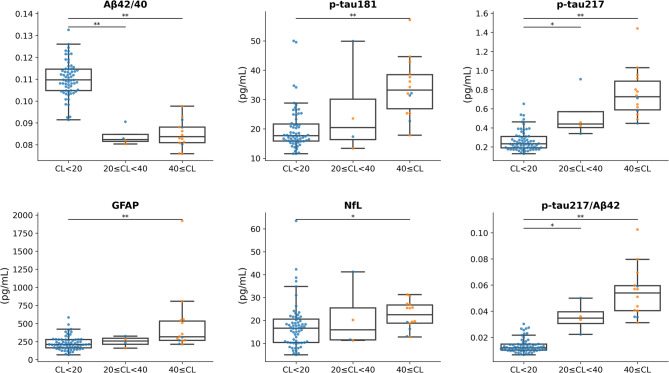 Keywords: Alzheimer’s disease; Aβ42/40; Centiloid; HISCL; Plasma biomarkers; Simoa; p-tau217; p-tau217/Aβ42.