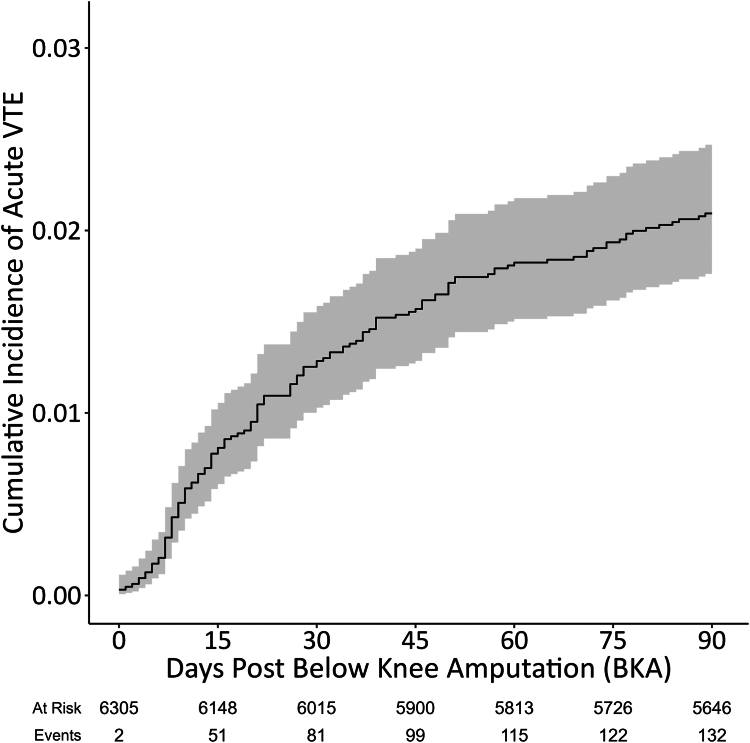 Results: A total of 6305 patients underwent a first-time surgical BKA. Of these, 132 experienced a VTE within 90 days post-BKA. Younger age was associated with a reduced risk of post-BKA VTE. After adjusting for confounders, VTE within 90 days of BKA was associated with a 3-fold increase in mortality (adjusted hazard ratio, 3.17, 95% CI, 2.12-4.17).