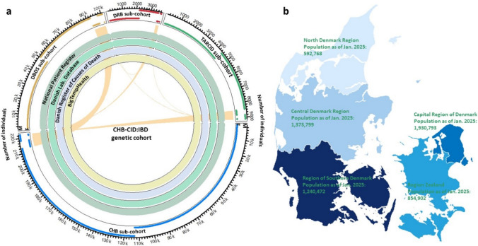 Declarations. Conflict of interest: All personal fees and grants were received outside this work. Anja Poulsen reports research grants and personal fees from Janssen, Takeda, and MSD, personal fees from Bristol Myers Squibb, national coordinator of studies from Agomab, Boehringer Ingelheim and Bristol Myers. Bente Glintborg has received research grants (paid to institution) from AbbVie, Pfizer, BMS, Sandoz. Bente Glintborg chairs the DANBIO steering committee. Jacob Broder Brodersen has received consultation fee from Jansen-Cilag. Johan Burisch reports grants and personal fees from AbbVie, Janssen-Cilag, Takeda, Tillots Pharma, Bristol Myers Squibb, and MSD, personal fees from Celgene, Pfizer, Samsung Bioepis, Pharmacosmos, Ferring, Galapagos, and Eli Lilly, and grants from Novo Nordisk Foundation. Mette Julsgaard has received research grants from Takeda and the Novo Nordisk Foundation (grant no. NNF23OC0081717), has been on the advisory board of PharmaCosmos, has received consultation fee from Ferring and Takeda, and has received speaker’s fees from Tillotts Pharma, MSD, Ferring, and Takeda. Vibeke A ndersen has served as advisory board member for MSD (Merck). Søren Brunak has ownerships in Intomics A/S, Hoba Therapeutics Aps, Novo Nordisk A/S, Lundbeck A/S, ALK abello A/S, Eli Lilly and Co and managing board memberships in Proscion A/S and Intomics A/S. Thorsten Brodersen’s spouse currently holds incentive stock options in LEO Pharma A/S. All other authors declare no conflict of interest. Ethical approval: CHB-CID:IBD studies will be conducted in accordance with the Declaration of Helsinki and has been approved by the National and the Capital, Central Denmark, and South Denmark Regional Committees on Health Research Ethics (NVK-1700407, H-18064178, M20100153, S-20120113, and S-20160124), as well as the Data Protection Agency of Capital (P-2019–99 and P-2022–876), Central (RM: J. 2010–41-4719) and Southern (RSD: 2008–58-035) Denmark. All individuals in CHB have been informed about their inclusion into the biobank and the use of their data for research. Concent for publication: ChatGPT ( https://chat.openai.com/ ) assisted copy editing was used and authors reviewed and revised the final version, taking full responsibility for the content of the publication.