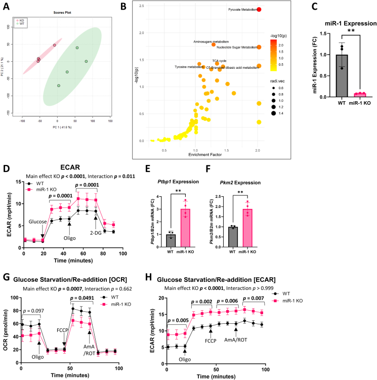 Methods: We used an inducible, skeletal muscle-specific knockout (KO) mouse model to examine miR-1 function. Argonaute 2 enhanced crosslinking and immunoprecipitation sequencing (AGO2 eCLIP-seq) and RNA-seq analyses identified miR-1 target genes. Metabolism was investigated using metabolomics, proteomics, and comprehensive bioenergetic and activity phenotyping. Corroborating information was provided from cell culture, C. elegans, and exercised human muscle tissue.