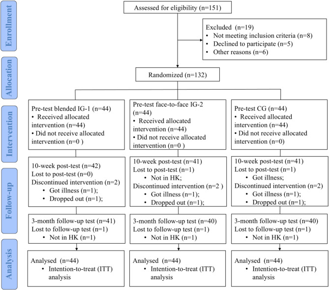 Declarations. Ethics approval and consent to participate: All procedures performed in studies involving human participants were done so following the ethical standards of the institutional and/or national research committee and with the 1964 Helsinki Declaration and its later amendments or comparable ethical standards. The study protocol was approved by the Research Ethics Committee of Hong Kong Baptist University (REC/21–22/0485) and was registered on the ISRCTN, ISRCTN32329348. All the participants completed the written informed consent form before the study’s commencement. Consent for publication: Not applicable. Competing interests: The authors declare no competing interests.