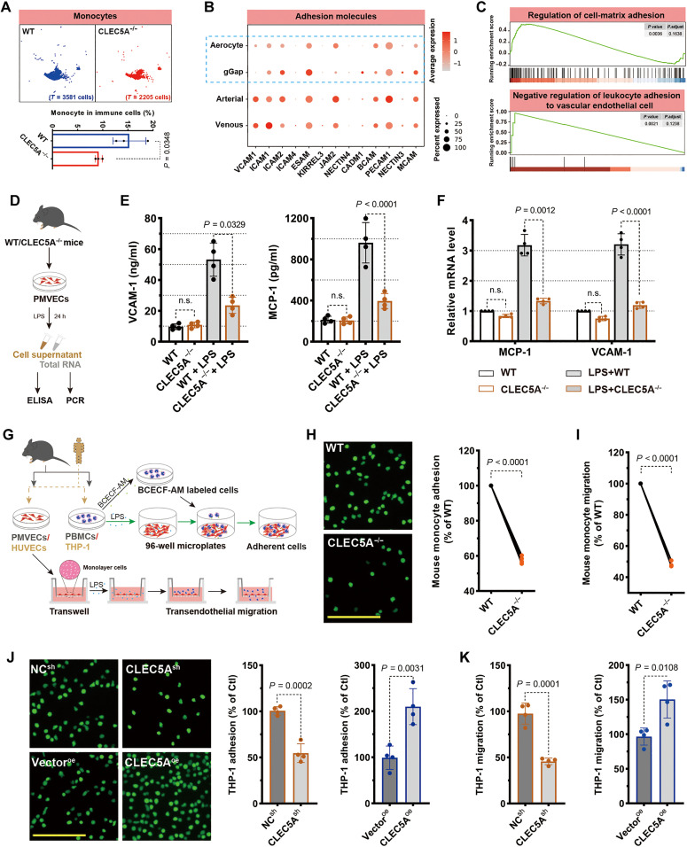 Endothelial barrier dysfunction and the resulting vascular injury are responsible for multiorgan failure in sepsis. Myeloid C-type lectin domain family 5 member A (CLEC5A) is a pattern recognition receptor involved in host defense against infection. Mice lacking CLEC5A were resistant to cecal ligation and puncture (CLP)-induced polymicrobial sepsis and lipopolysaccharide (LPS)-induced endotoxemia, as observed by decreased mortality. Single-cell RNA sequencing revealed transcriptomic heterogeneity of vascular endothelial cells in CLEC5A-deficient lungs following CLP. Endothelial-specific knockdown of CLEC5A improved survival of CLP-challenged mice, which was completely ineffective with reexpression of endothelial CLEC5A. The survival benefits were attributed to alleviated inflammatory storm and vascular leakage. Furthermore, endothelial CLEC5A deficiency protected mice against Escherichia coli-induced pneumonia. In vitro, CLEC5A deletion maintained trans-endothelial electrical resistance, and inhibited adhesion and trans-endothelial migration of monocytes/neutrophils under LPS stimulation. The study unveils the importance of CLEC5A in regulating endothelial barrier function and suggests endothelial CLEC5A as a therapeutic target for pneumonia or sepsis-causing bacterial infection.