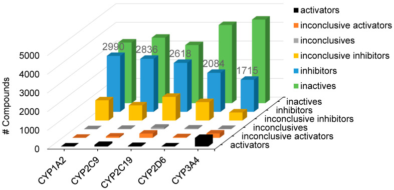 Keywords: CYP inhibitors; CYP1A2; CYP2C19; CYP2C9; CYP2D6; CYP3A4; cytochrome P450 (CYP); quantitative high-throughput screening (qHTS).