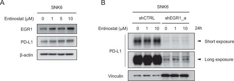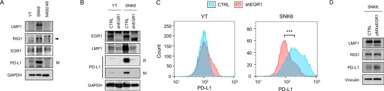 This study investigates the role of Early Growth Response 1 (EGR1) in extranodal natural killer/T-cell lymphoma (ENKTL) and its correlation with PD-L1 expression. Analysis of 62 ENKTL patient samples revealed that high EGR1 expression was linked to PD-L1 positivity, the immune evasion-A subtype, and early-stage disease. Although EGR1 expression was not an independent prognostic factor for overall survival, patients with higher EGR1 levels showed a trend toward better outcomes. In ENKTL cell lines (YT, SNK6), EGR1 positively regulated LMP1 and PD-L1 expression. Knockdown of EGR1 reduced PD-L1 levels, decreased PTEN, increased AKT phosphorylation, and abrogated STAT3 phosphorylation. Conversely, EGR1 overexpression enhanced PD-L1. Treatment with the histone deacetylase inhibitor entinostat upregulated both EGR1 and PD-L1, but this effect was lost in EGR1-depleted cells, indicating EGR1's necessity for HDAC inhibitor-induced PD-L1 expression. These findings reveal EGR1's pivotal role in tumor immune modulation and highlight potential combination therapies targeting EGR1, epigenetic regulators, and PD-1/PD-L1 checkpoints.