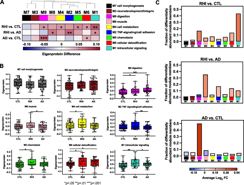 Conclusions: Molecular pathways in plasma most consistently implicated in RHI were tied to immune response, mitochondrial function, and cell metabolism. RHI-related proteomic signatures tracked with antemortem cognitive severity and postmortem neuropathological burden, providing converging evidence for their role in disease progression. Differentially abundant proteins and co-expression modules in RHI may inform mechanisms linking RHI to increased dementia risk, thus guiding diagnostic biomarker and therapeutic development for at-risk populations.