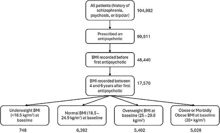 Keywords: Antipsychotic; BMI; Longitudinal; Prescribing; Psychosis; Sex difference; Weight gain.