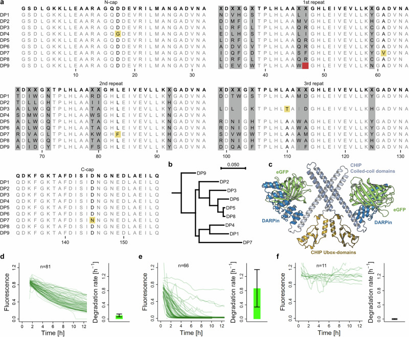 BioPROTACs consist of a target-binding unit and a component of the ubiquitin-proteasome system. However, the specific biophysical features influencing their effectiveness are poorly understood. We investigated the design principles defining the target-binding moiety of bioPROTACs. We used our recently developed assay for accurately measuring degradation rates, based on microinjection and live-cell microscopy, independent of other confounding factors like biosynthesis and transport. We used a very efficient UPS interaction domain from CHIP E3 ligase, and 9 different well-characterized DARPins to test degradation of the proof-of-principle target eGFP. All but two DARPins work well in this context, one sterically preventing E2 binding in the complex, the other overlapping with the target ubiquitination epitope. Affinity and thermodynamic stability of the binders had only a modest role. BioPROTACs constructed in this way were able to degrade eGFP catalytically. DARPins by themselves could also accelerate degradation of bound GFP, using other cellular E3 systems, but in a non-catalytic manner. The most important factor for efficient degradation by a bioPROTAC in trans is the correct orientation of the complex for target ubiquitination and presentation to the proteasome, still to be determined empirically. The strategies developed here show an efficient pathway to characterize and optimize such systems.