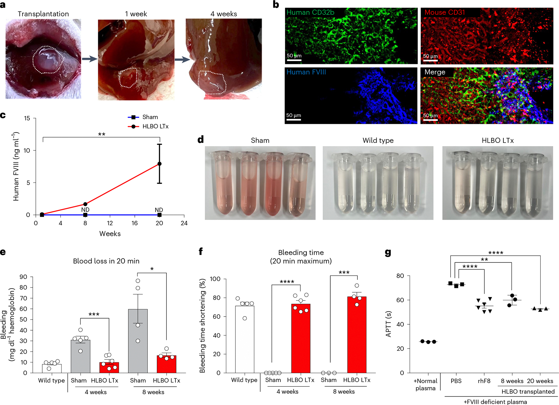 The induction of tissue-specific vessels in in vitro living tissue systems remains challenging. Here, we directly differentiated human pluripotent stem cells into CD32b+ putative liver sinusoidal progenitors by dictating developmental pathways. By devising an inverted multilayered air-liquid interface culture, hepatic endoderm, septum mesenchyme, arterial and sinusoidal quadruple progenitors self-organize to generate and sustain hepatocyte-like cells neighboured by divergent endothelial subsets composed of CD32blowCD31high, LYVE1+STAB1+CD32bhighCD31lowTHBD-vWF- and LYVE1-THBD+vWF+ cells. WNT2 mediates sinusoidal-to-hepatic intercellular crosstalk potentiating hepatocyte differentiation and branched endothelial network formation. Intravital imaging reveals the iPS-cell-derived putative liver sinusoidal endothelial progenitor develops fully perfused human vessels with functional sinusoid-like features. Organoid-derived hepatocyte- and sinusoid-derived coagulation factors enable correction of in vitro clotting time with Factor V-, VIII-, IX- and XI-deficient plasma, and rescues the severe bleeding phenotype in haemophilia A mice on transplantation. Advanced organoid vascularization technology allows for interrogating key insights governing organ-specific vessel development, paving the way for coagulation disorder therapeutics.