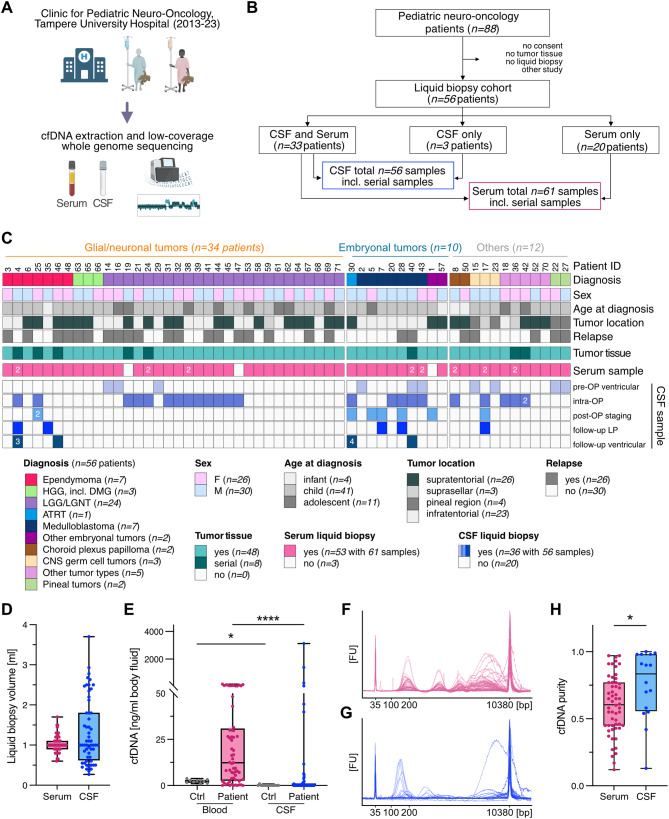 Keywords: Cell-free DNA; Cerebrospinal fluid liquid biopsies; Circulating-tumor DNA; Copy number variation profiling; Longitudinal molecular biomarkers; Low-coverage whole genome sequencing; Low-input samples; Minimally-invasive disease monitoring; Pediatric neuro-oncology; Tumor evolution.
