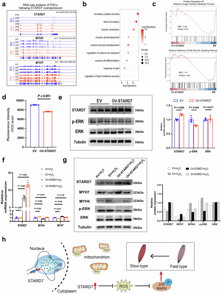 The composition of muscle fibers, characterized by distinct contractile and metabolic properties, significantly influences meat quality and glucose homeostasis. However, the mechanisms by which three-dimensional (3D) genome topology integrates with epigenetic states to regulate muscle fiber specification and transformation remain poorly understood. Here, we present an integrative analysis of the transcriptome, epigenome, and 3D genome architecture in the slow-twitch glycolytic extensor digitorum longus (EDL) and fast-twitch oxidative soleus (SOL) muscles of the pig (Sus scrofa). Global remodeling of enhancer-promoter (E-P) interactions emerged as a central driver of transcriptional reprogramming associated with muscle contraction and glucose metabolism. We identified tissue-specific super-enhancers (SEs) that regulate muscle fiber-type specification through cooperation of chromatin looping and transcription factors such as KLF5. Notably, the SE-driven activation of STARD7 facilitated the transformation of glycolytic fibers into oxidative fibers by mitigating reactive oxygen species levels and suppressing ERK MAPK signaling. This study elucidates the principles of 3D genome organization in the epigenetic regulation of muscle fiber specification and transformation, providing a foundation for novel therapeutic strategies targeting metabolic disorders and enhancing meat quality.